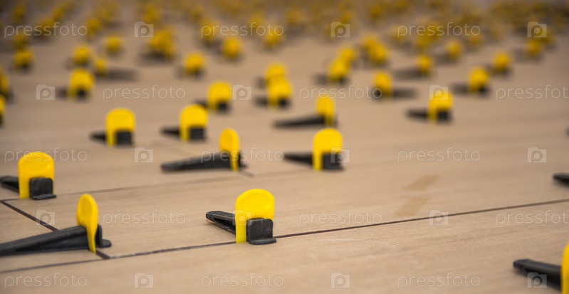 Процесс укладки напольной плитки на основание СВП, система выравнивания плитки