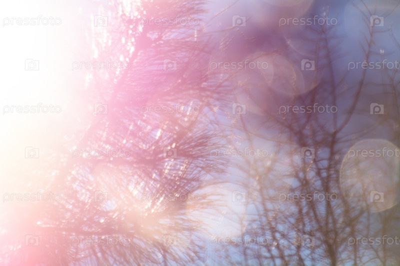 Еловые иголки в солнечном свете, боке, избирательный фокус