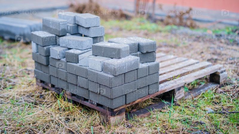 Строительный поддон с тротуарной плиткой