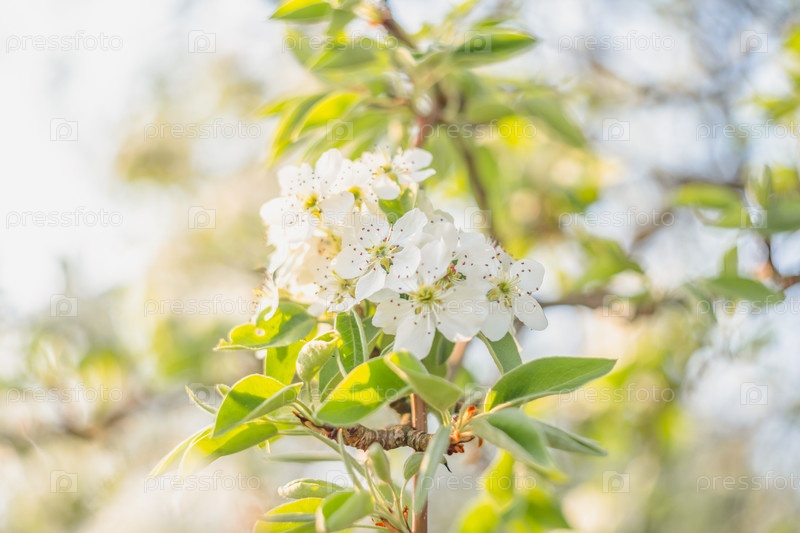 Весенние цветы на ветвях деревьев солнечный день