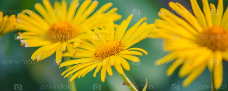 Желтые ромашки среди зелени в саду
