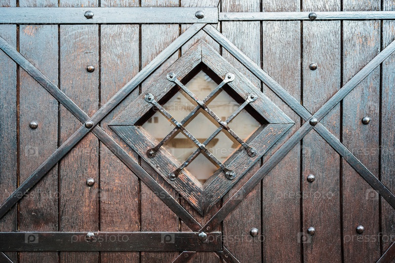 Большие старинные деревянные двери с мягкой обивкой