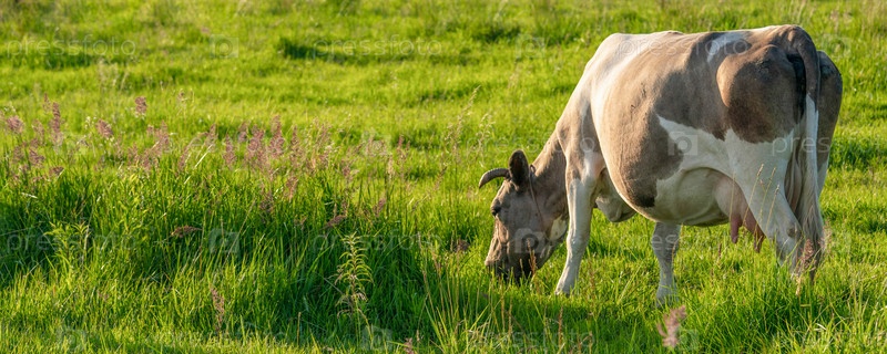 Коровы пасутся на сочном лугу в летний день