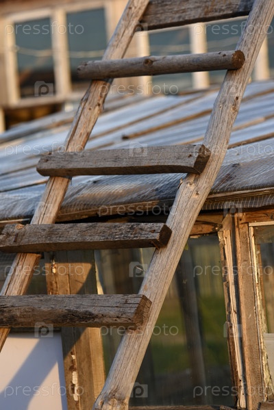 Старая деревянная лестница вела в сарай. Деревянная лестница в деревне