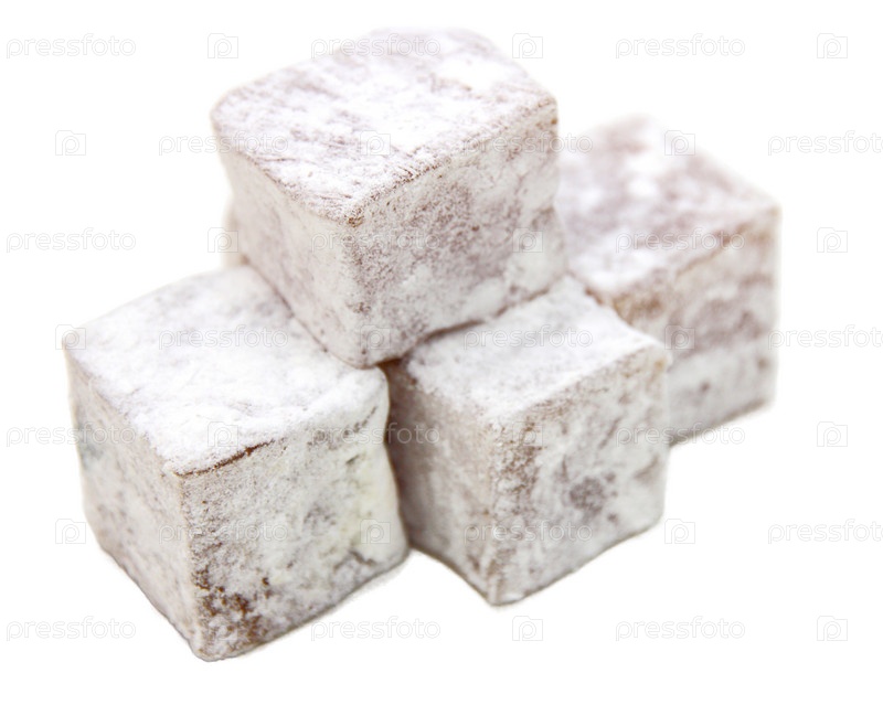 Сладкие кусочки турецкого наслаждения изолированы на белом фоне