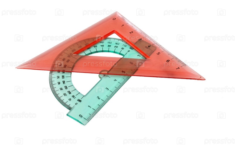 Пластиковая линейка и карандаш на белом фоне