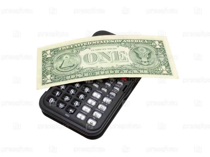 Банкноты доллара и калькулятор изолированы на белом фоне