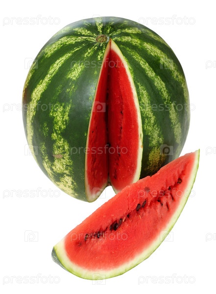 Арбуз, основной продукт питания и натуральные фрукты, показан на белом фоне