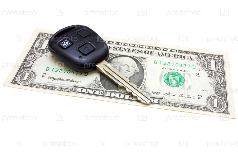 Ключи от машины над банкнотой в один доллар изолированы на белом фоне