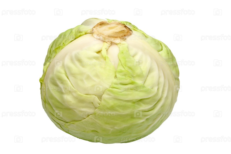 Спелая круглая зеленая капуста изолирована на белом фоне