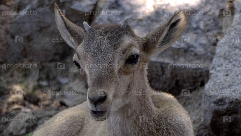 Детеныш горный козел на фоне скал