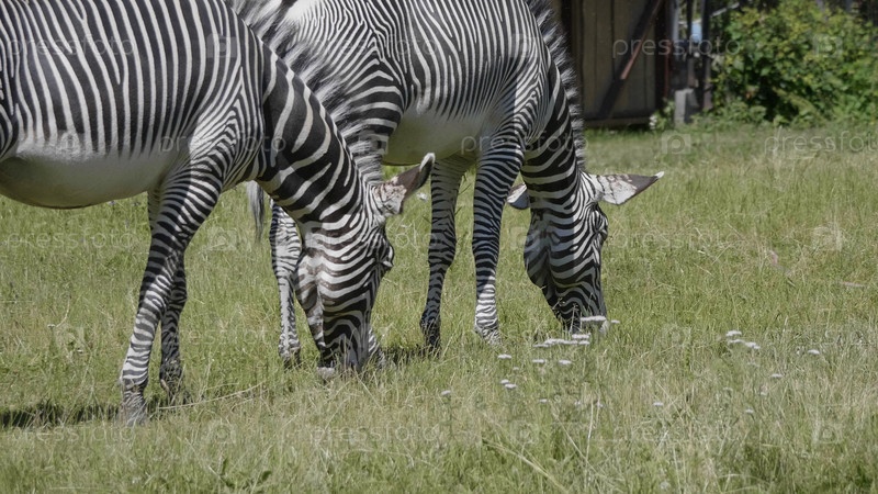 Африканская красивая зебра есть свежую зеленую траву