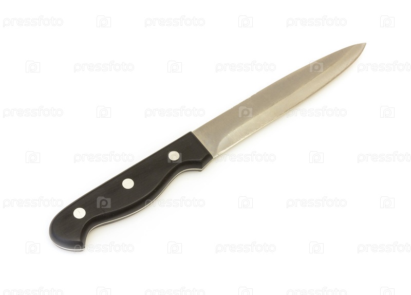 Кухонный нож повара с черной ручкой, изолированный на белом фоне