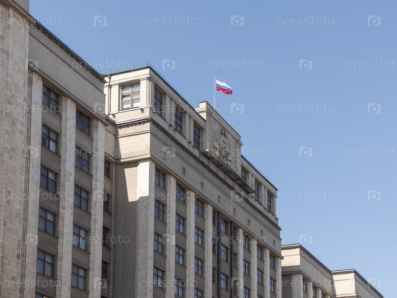 МОСКВА, РОССИЯ - 27 июля 2022 года: Фасад Государственной Думы, здание Парламента Российской Федерации, достопримечательность в центре Москвы