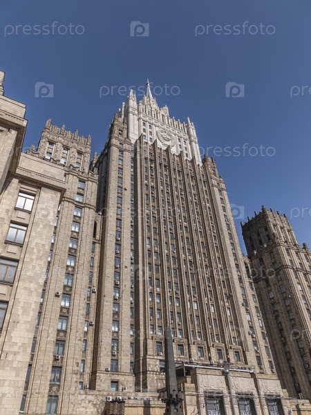 МОСКВА, РОССИЯ - 27 июля 2022 года: Главное здание Министерства иностранных дел - один из семи знаменитых небоскребов, построенных в сталинском стиле, 27 июля 2022 года в Москве, Россия