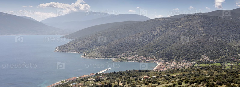 Вид на набережную и приморскую деревню на острове Кефалония (Греция)