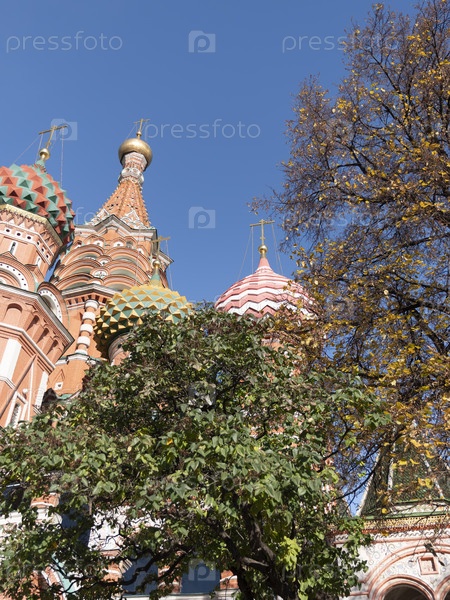 МОСКВА - 27 ИЮЛЯ: Вершины Воскресенского собора Василия Блаженного на Москве 27 июля 2022 года в Москве, Россия