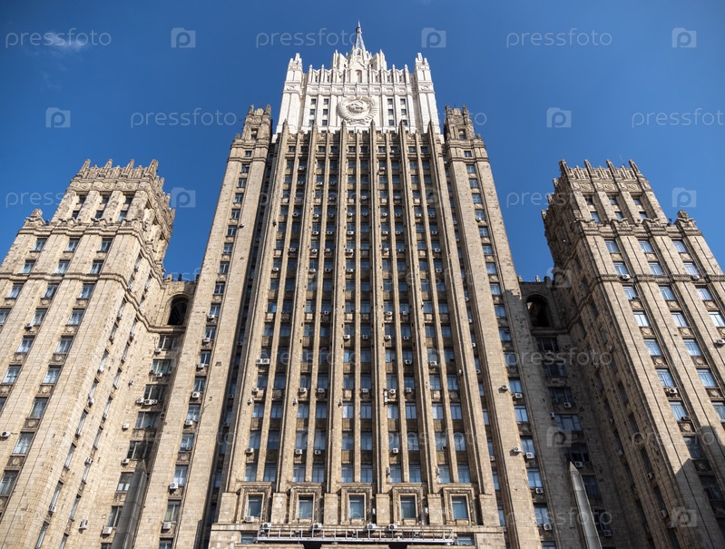 МОСКВА, РОССИЯ - 27 июля 2022 года: Главное здание Министерства иностранных дел - один из семи знаменитых небоскребов, построенных в сталинском стиле, 27 июля 2022 года в Москве, Россия