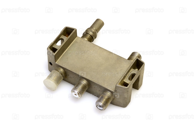 ТВ-сплиттер для подключения коаксиальных кабелей на белом фоне