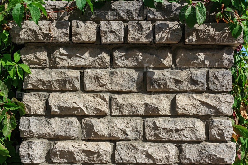 Ползучее растение на серой кирпичной стене
