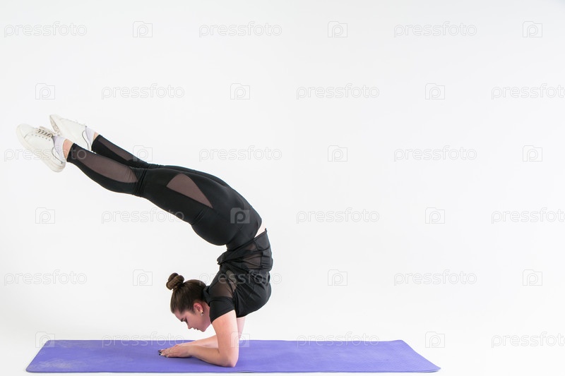 Гимнастические упражнения, девушка выполняет фитнес-упражнения в фотостудии
