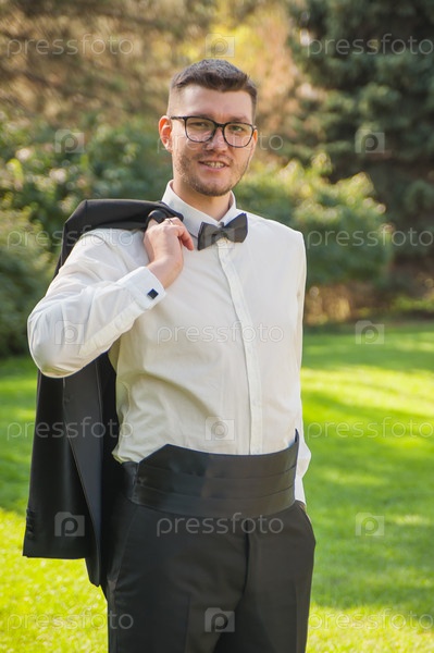 Жених один позирует на свадебной фотосессии