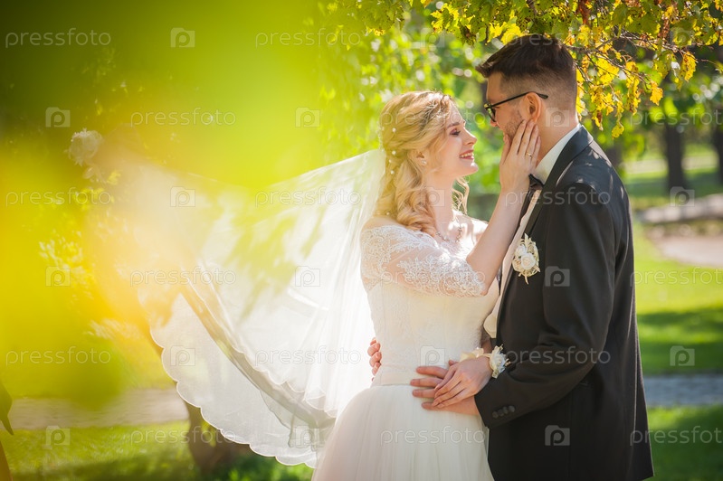 Жених и невеста нежно гладят лица друг друга