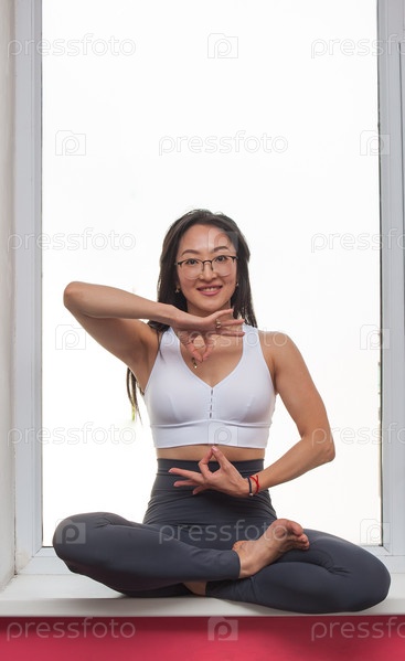 Азиатская девушка демонстрирует упражнения йоги и акробатики