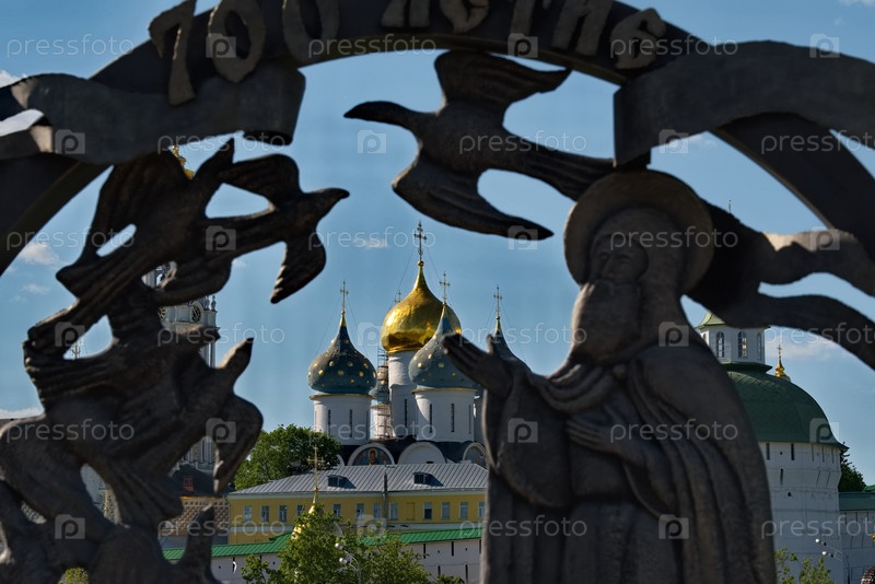 Сергиев Посад. Россия. 07 июня 2022 года. Вид на позолоченные купола православных церквей Троице-Сергиевой лавры. Знаменитый монастырь был основан в 1337 году