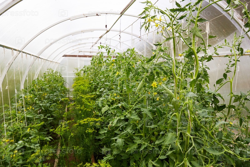 Цветущие растения томата растут в теплице