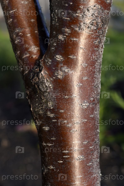 Красный ствол рябины. Красная кора дерева