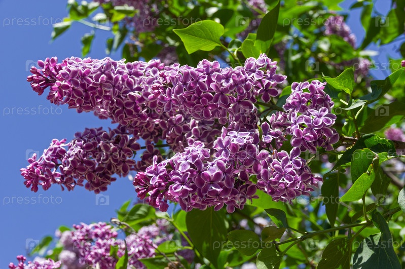 Цветящий сирень сорт 'Сенсация' Ботанический сад Московского университета Солнечный день в конце мая Сорт 'Sensation' выведен из Голландии в 1938 году