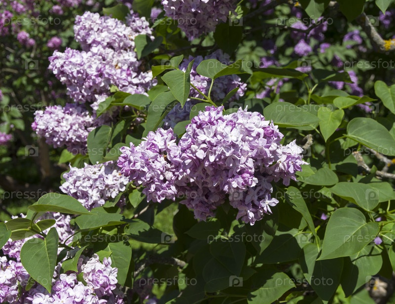 Цветящий сирень сорт 'Катерина Хавемейер (Katherine Havemeyer)'. Ботанический сад Московского университета. Солнечный день в конце мая. Сорт'Катрин Хавемайер' выведен во Франции в 1922 году