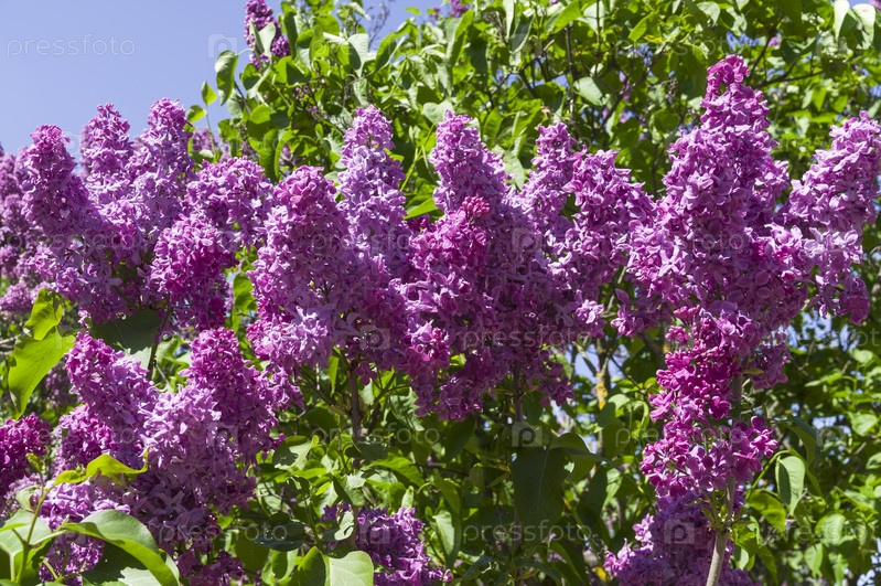 Цветущая сирень сорта "День Победы". Ботанический сад Московского университета. Солнечный день в конце мая