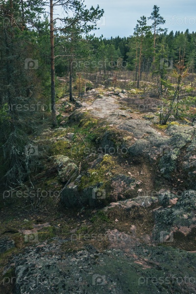 Лесной пейзаж с вершины горы в Карелии