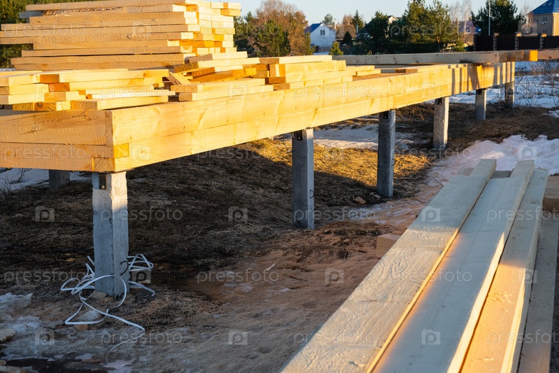 Фундамент деревянного каркасного дома на сваях - строительная площадка, процесс возведения каркаса