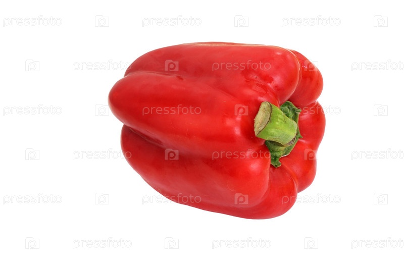 Красный перец с зеленым стеблем на белом фоне