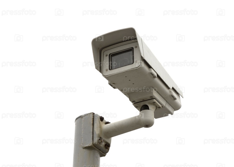 Видеонаблюдение на высоком столбе изолировано на белом фоне