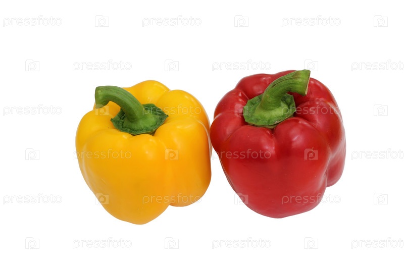 Желтый и красный перец на белом фоне, необходимые пищевые ингредиенты