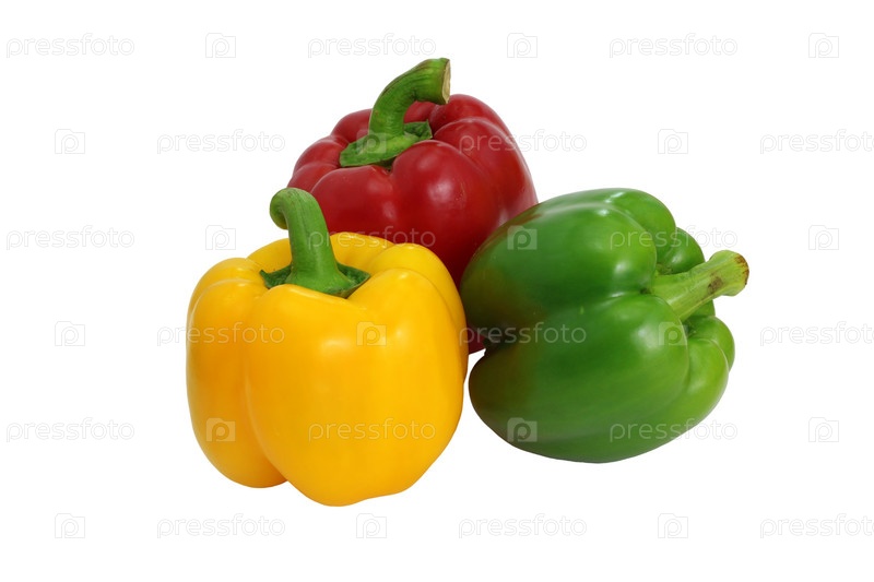Желтый и красный перец на белом фоне, необходимые пищевые ингредиенты