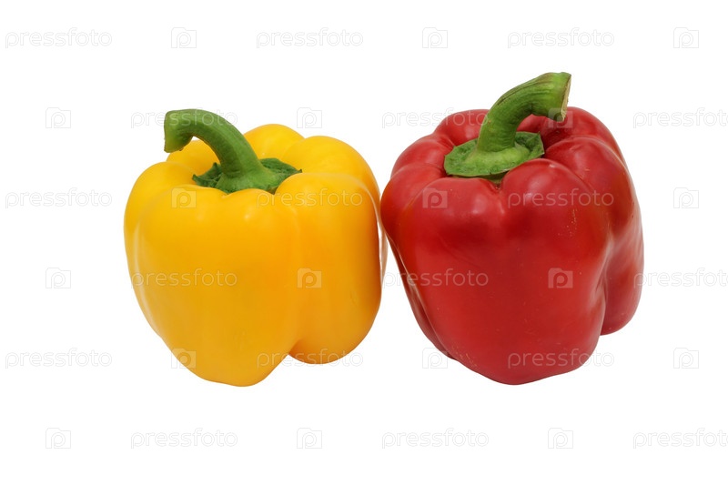 Желтый и красный перец на белом фоне, необходимые пищевые ингредиенты
