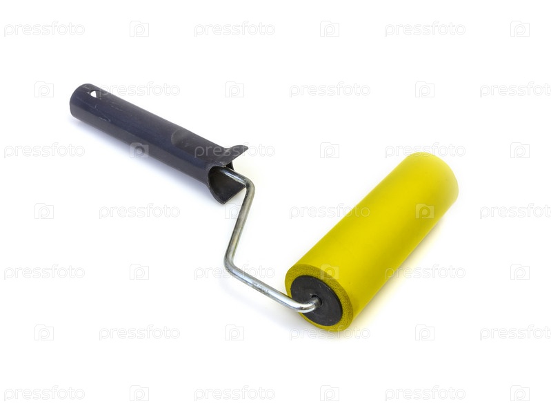 Инструмент, валик для разглаживания обоев желтого цвета на белом фоне