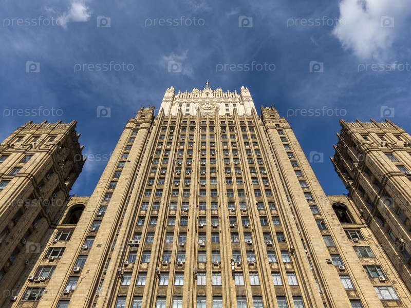 МОСКВА, РОССИЯ - 27 июля 2022 года: Главное здание Министерства иностранных дел - один из семи знаменитых небоскребов, построенных в сталинском стиле, 27 июля 2022 года в Москве, Россия