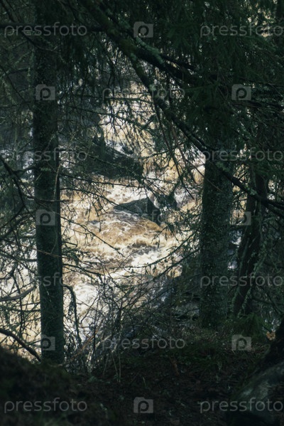 Водопад Белые мосты в лесу Карелии весной
