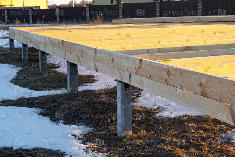 Фундамент деревянного каркасного дома на сваях - строительная площадка, процесс возведения каркаса
