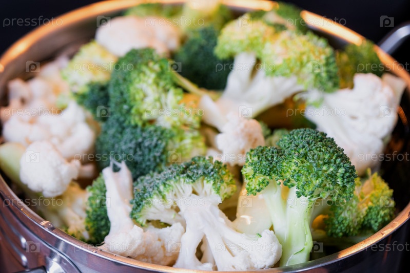 Брокколи и цветную капусту готовят на пару в кастрюле - здоровое питание, детское питание, приготовление в пароварке