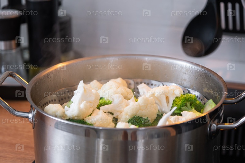 Брокколи и цветную капусту готовят на пару в кастрюле - здоровое питание, детское питание, приготовление в пароварке