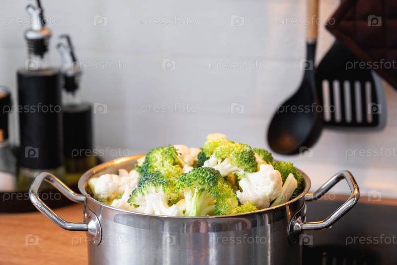 Брокколи и цветную капусту готовят на пару в кастрюле - здоровое питание, детское питание, приготовление в пароварке