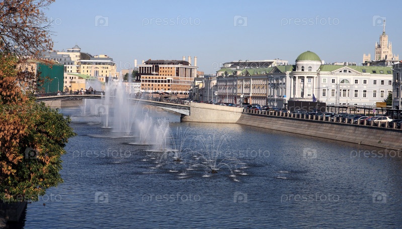 Много фонтанов на реке