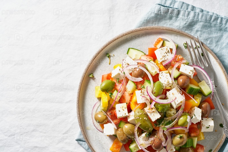 Часть греческого деревенского салата хориатики, вегетарианская средиземноморская кухня. Копировать пространство